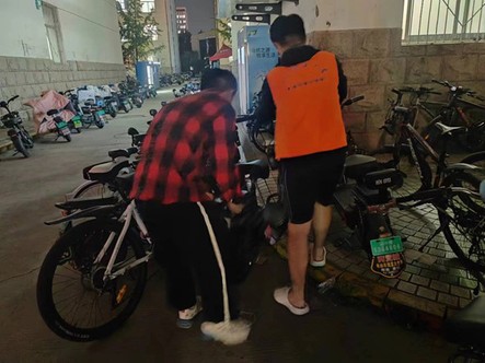 活动前,在17、18宿分别张贴规范摆放车辆倡议书提倡大家按照要求摆放车辆。活动过程中,权益部志愿者对道路两侧乱停乱放、影响通行及道路交通安全、摆放不一致等不规范停放行为的车辆,按照“入位、顺向、整齐”的要求进行了规整摆放。
