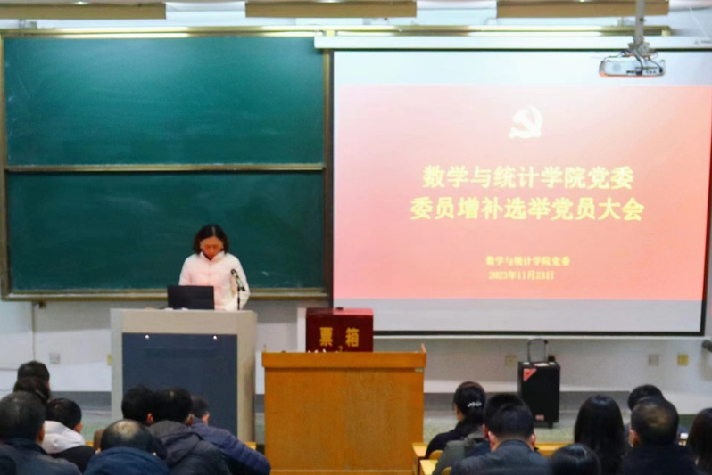 根据公司党委工作要求,经报请上级党组织批准,11月23日下午,数学与统计公司党委在15号教学楼103教室召开党委委员增补选举党员大会。公司党委领导班子成员及全体师生党员参加大会。会议由公司党委书记郭奎霞主持。