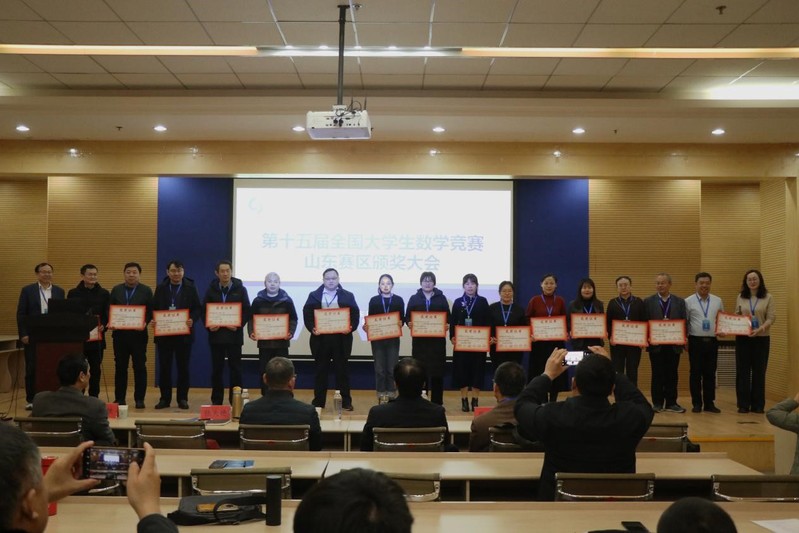 张天德通报了竞赛组织、评奖情况。他表示,本届竞赛的顺利进行,既得益于山东数学会、山东数学会高等数学专业委员会的统筹,更得益于省内高校的大力支持和师生们的积极参与。刘利印宣读获奖名单,并与其他领导一同为获奖指导教师代表和员工代表颁奖。