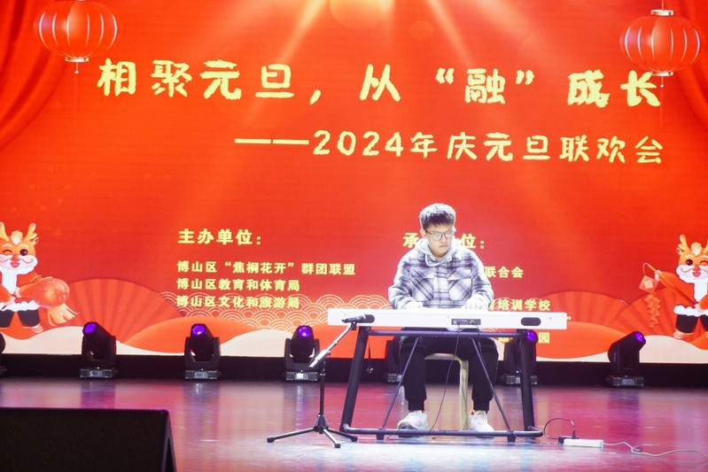 活动中,成员们不仅投身于志愿服务,还积极参与到元旦节目的表演中。胡宁馨、高恒欣、李凯锋、刘潇四名同学共同朗诵的诗歌《守护星星的孩子》,马宇辰同学的钢琴表演《致爱丽丝》,受到了台下领导、家长及同学们的一致好评。同时,成员们也观看了来自博山自闭症疗育培训公司中可爱孩子们带来的精彩节目。尽管在开始表演时孩子们略显拘谨,但看着他们在舞台上愈来愈佳的表现,成员们也备受感动。在表演接近尾声时,郭奎霞、刘曌阳及党支部成员们被邀请上台,与孩子、家长和老师们一同参与到表演中,活动气氛达到了高潮。