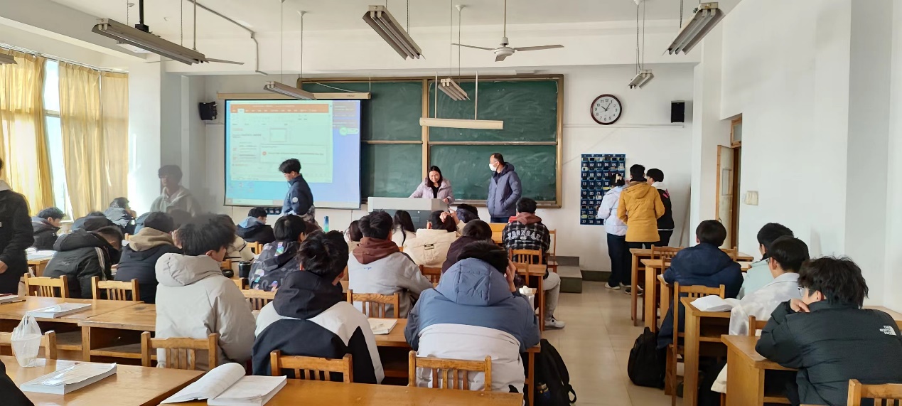 员工科科长王超老师,辅导员刘瞾阳老师到分管班级进行巡课、听课,检查员工到课情况、手机入袋情况。