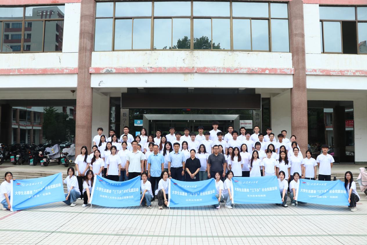 最后,徐藤和曹玉霞为社会实践团队代表授旗。现场师生移步至15号教学楼前合影留念。