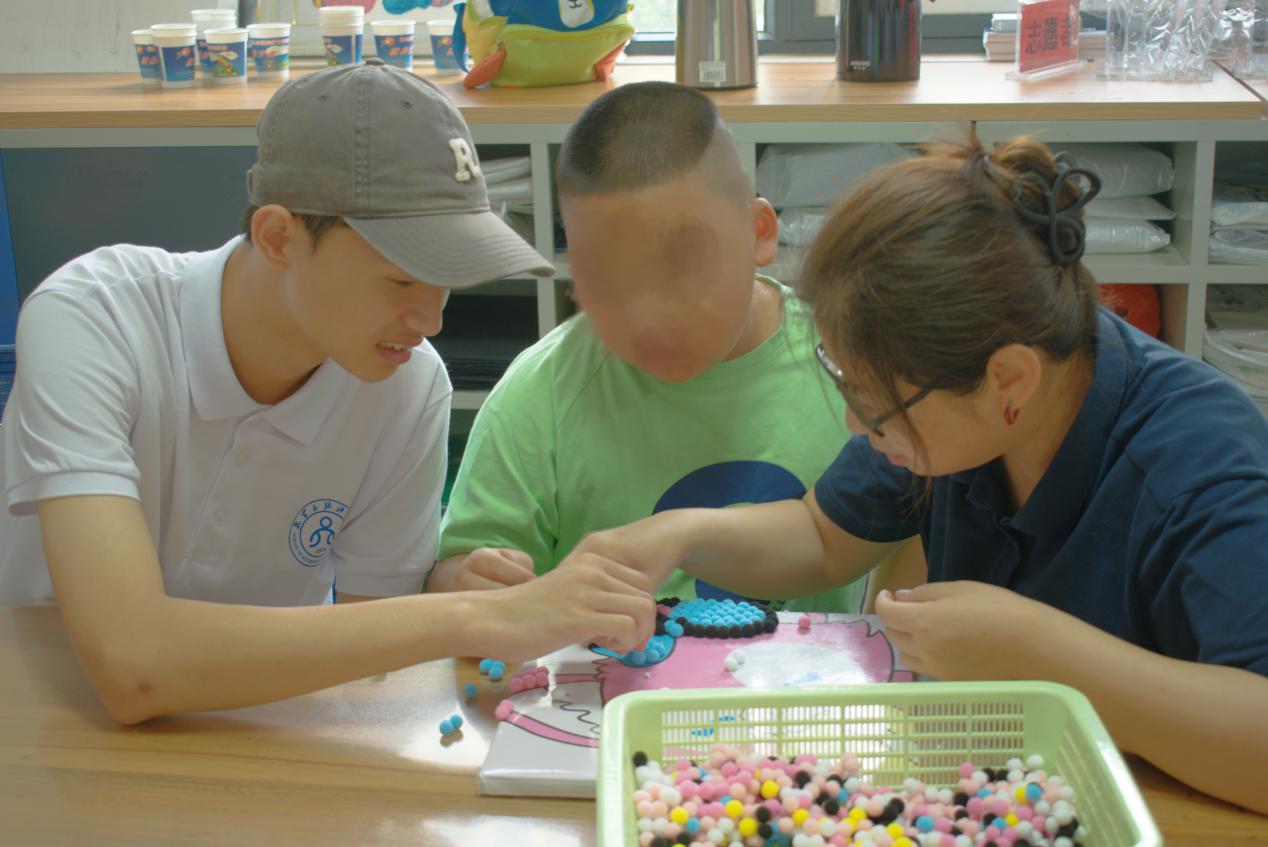 仪式结束后,参会领导、实践团与特殊儿童一同参与特奥融合体验活动,实践团成员跟随博山自闭症疗育培训公司专业教师走进课堂,每名实践团成员学习并开展了认知沟通、多媒体训练、精细训练、音乐康复等教育活动,在实践中感悟颇多,深刻明白了特殊教育开展的意义。同时,志愿者们也深刻感悟到每位特殊儿童都是独一无二的个体,他们有着自己的兴趣和特长。教育不仅仅在于传授知识,更要尊重每一位特殊儿童并挖掘他们的闪光点。孤独症儿童又被亲切的成为“星星的孩子”,他们如同夜空中璀璨的星星,虽然沉默不语,却闪烁着独特的光芒。