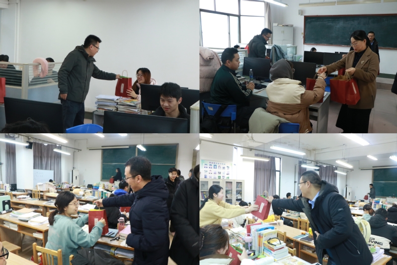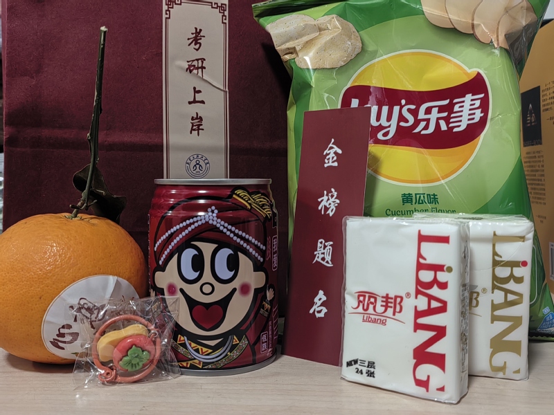 活动现场,老师们以温暖亲切的话语为同学们送上关怀与祝福,希望各考研学子在最后阶段能够放平心态,适当劳逸结合,积极备战,并表示公司会始终作为他们坚强的后盾,全力支持同学们的考研之旅,祝愿每一位考生都能正常发挥,顺利上岸。随后,老师们将承载着满满祝福的考研礼包送到每一位考研学子手中。运“旺”时盛,“柿柿”如意,非你莫“薯”,一战“橙”硕,“纸”日可待,礼包里每一份礼物都包含着公司对考研学子的关怀与期望,希望同学们可以积极的心态应对考试,取得理想成绩。