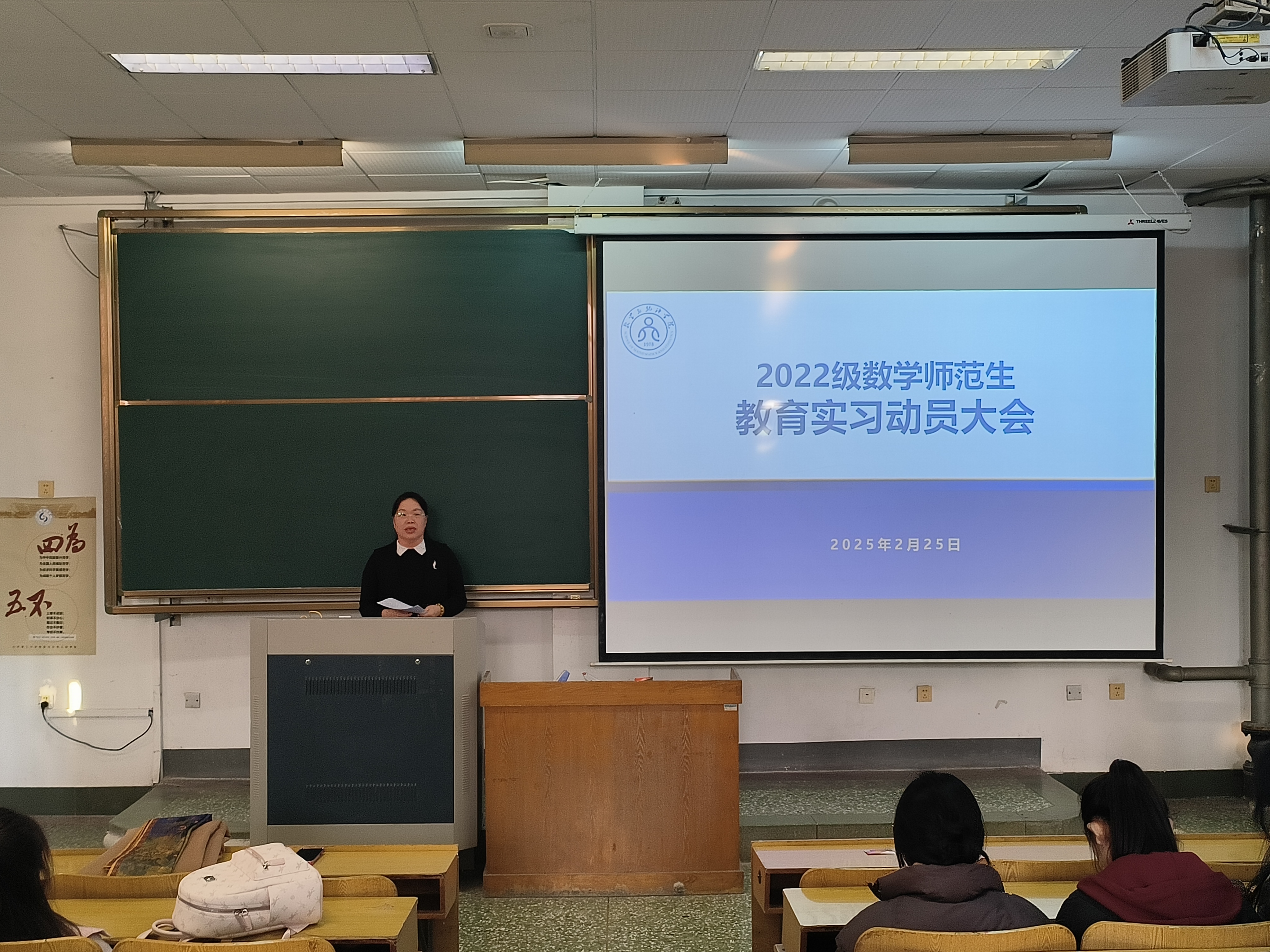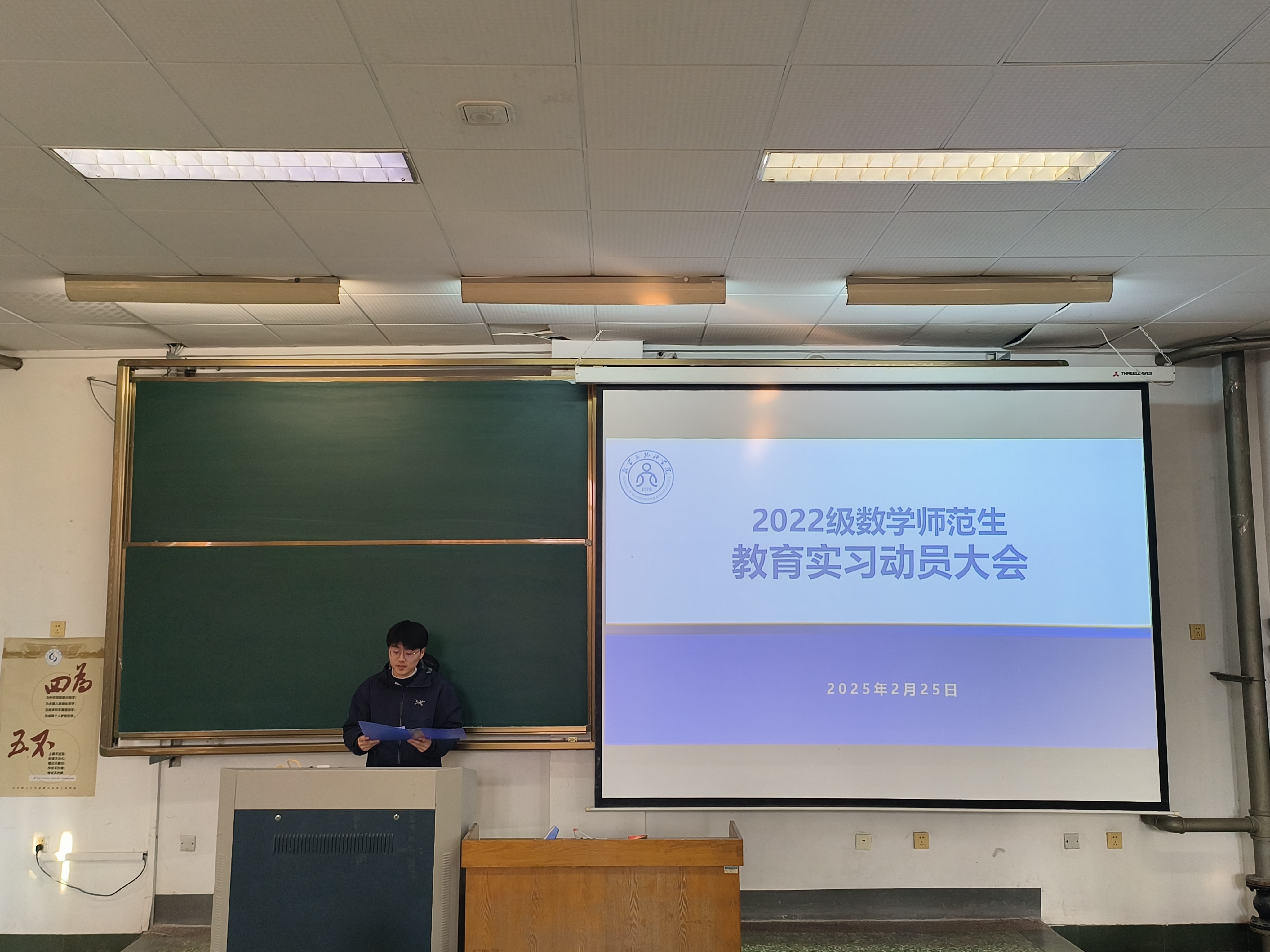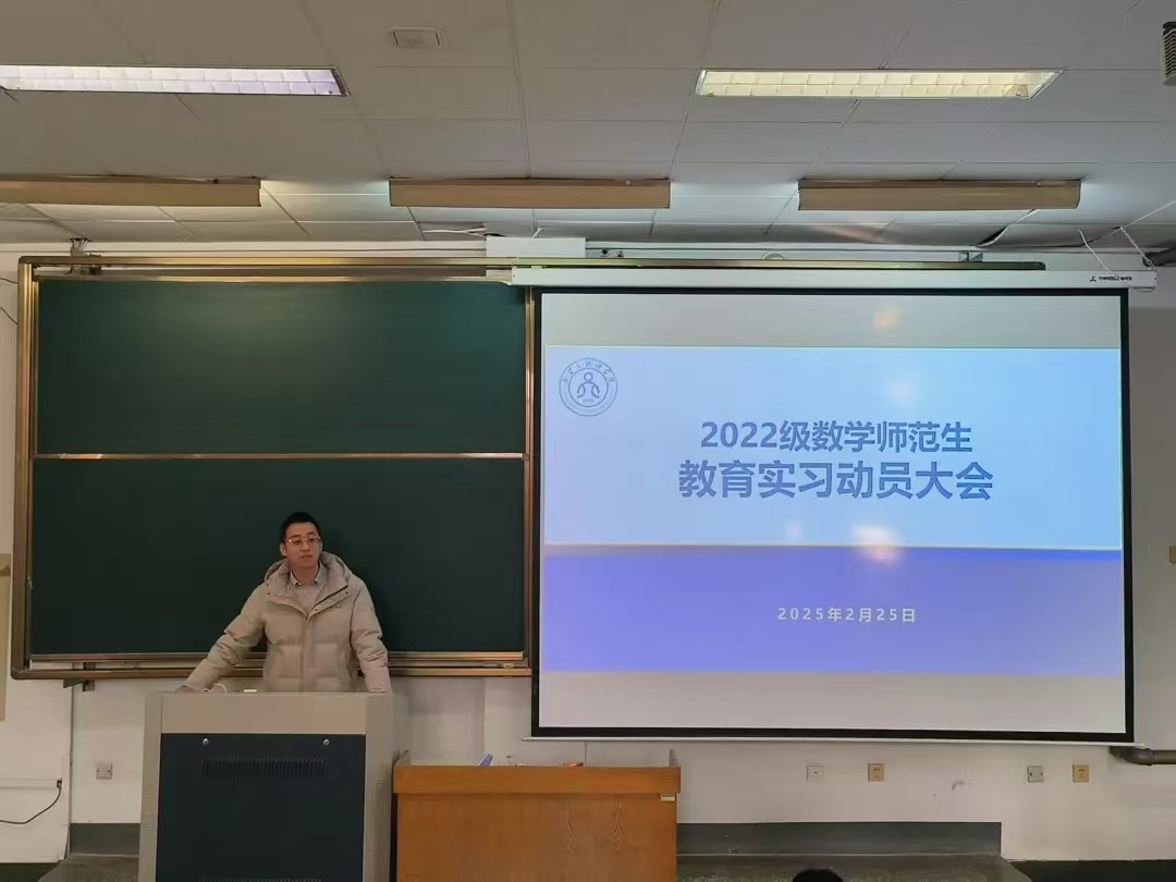 为鼓励公司2022级师范生们积极投身实习,在实践中提升教学能力,2月25日下午,betway西汉姆联官方网站教育实习动员大会在15教103召开。此次动员大会由2022级辅导员刘曌阳主持,公司党委副书记曹玉霞、数学与应用数学系副主任马奎成以及全体2022级数学专业师范生参加。