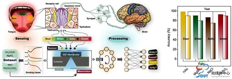 仿生“类脑计算”是目前人工智能领域最核心的研究方向之一,模拟人体感官的感存算一体化系统是该方向最重要的研究课题。相比于目前广泛研究的视觉与触觉感知,仿生味觉感存算一体化系统在环境监测、食品安全、健康监测、疾病诊断以及味觉重构等方面将发挥独特功能。与视觉与触觉不同,味觉感知不但涉及化学(生物)物质交换,器件工作往往要求液相生理环境,具有更为复杂的过程,实现其感存算一体极具挑战。