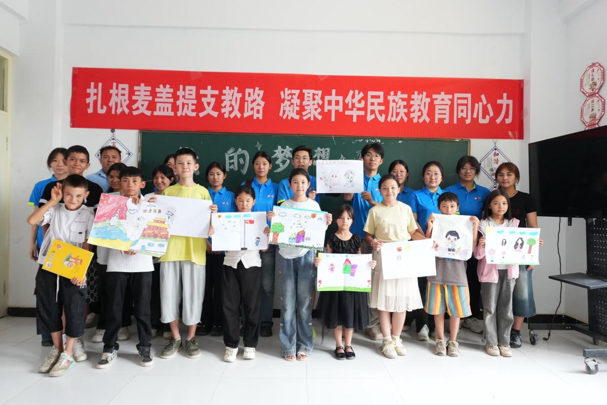 “红领巾小课堂”作为覆盖城乡的教育实践平台,以铸牢中华民族共同体意识为主线,让教育兼具深度与温度。此次活动通过梦想分享、绘画创作与学业辅导相结合的形式,为当地少数民族员工提供了展示自我、提升能力的机会,不仅丰富了孩子们的暑期生活,更在互动交流中厚植了爱国情怀,增进了民族情谊。今后,鲁喀石榴籽实践团将持续以实际行动践行使命,用爱心与责任助力孩子们成长成才,为铸牢中华民族共同体意识贡献青春力量。
