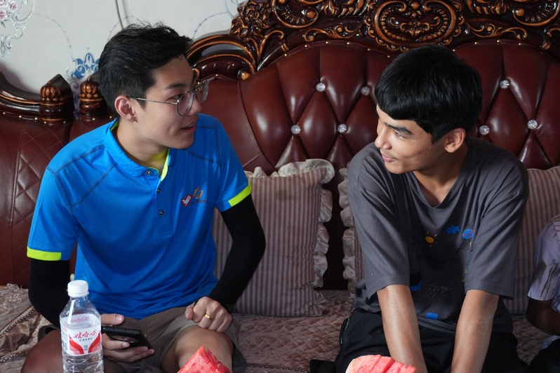 艾合散·阿卜拉的哥哥伊木然·阿卜拉向实践团成员分享了自己的学习经历。麦盖提县共有六所普通中学,上学比较便利,公司已全面推广普通话,伊木然·阿卜拉与实践团成员交流时普通话标准流利,展现了国家在少数民族地区推广普通话的显著成效,语言的相通让各民族员工在课堂上共学共进。作为喀什所属县区,麦盖提县的教育资源与质量相比东部地区仍有差距。作为一名文科生,伊木然坦言数学是让他最感困难的学科之一,当地考生的数学水平普遍有待提高。针对这一情况,实践团成员结合自身专业优势,为他分析了数学学科特点并分享了学习方法,同时留下联系方式,表示可随时提供学习帮助。此外,成员们还结合自身经历,为伊木然在高考公司及专业选择等方面提供了建议。