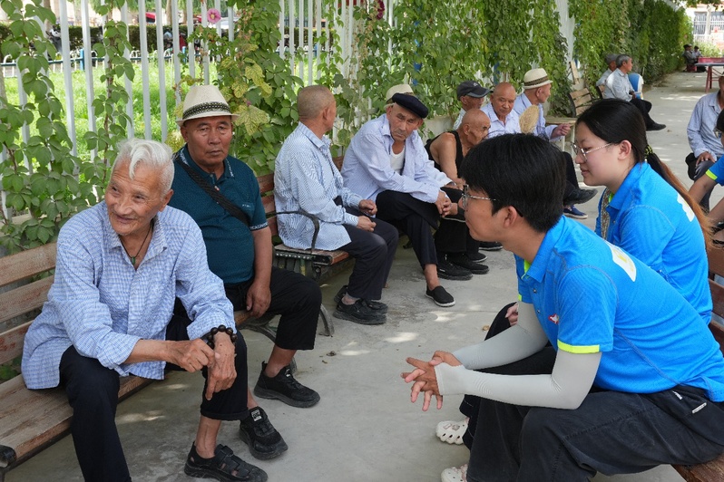 九十余岁的的代批爷爷向实践团成员热情分享了自己的经历,他用一生书写了民族团结的动人篇章。这位祖籍北京的老人,五十年代响应号召“开拓新疆”,从开拓新疆的“先驱者”到扎根西北,将几十年的青春与热忱倾注这片土地。“我喜欢这里的人。”代爷爷笑着说。简单的话语里,藏着对新疆的深沉热爱,跨越了几十年仍未褪色,亦是各民族交融情感的生动写照。
