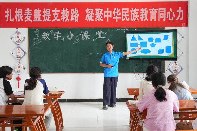 为丰富当地员工暑期生活,铸牢中华民族共同体意识,7月30日,betway西汉姆联官方网站“鲁喀石榴籽”实践团与“红领巾小课堂”携手开展数学主题趣味课堂,通过丰富多样的形式,为同学们带来了知识与欢乐,在互动中厚植民族团结情谊。