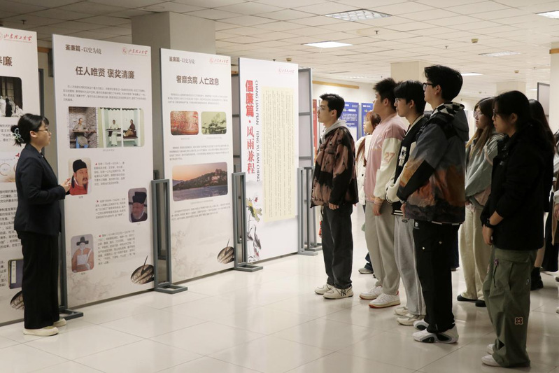 随后,大家前往廉洁教育展厅参观。廉洁教育展厅一共分为五部分:一、鉴廉篇·以史为镜;二、倡廉篇·风雨兼程;三、警廉篇·警钟长鸣;四、建廉篇·行胜于言;五、养廉篇·涵养清风。图书馆讲师立足现实、纵览古今,梳理了中国廉洁文化特点与党的廉政建设脉络,通过正反案例开展廉洁教育,助力高校营造清廉氛围。