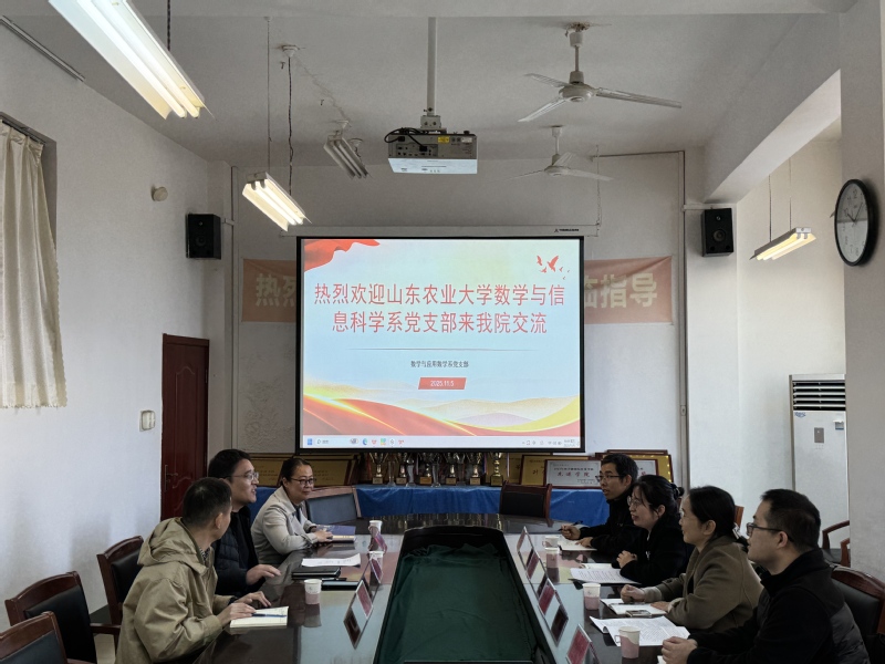 为深入推进新时代高校基层党组织建设,提升样板党支部创建质量,近日,山东农业大学数学系党支部一行4人在党支部书记于瑞林副教授带领下来访公司betway西汉姆联官方网站,与数学与应用数学系党支部开展申报工作经验交流。党支部书记高健副教授、副书记计省进副教授和张艳平副教授参加座谈。