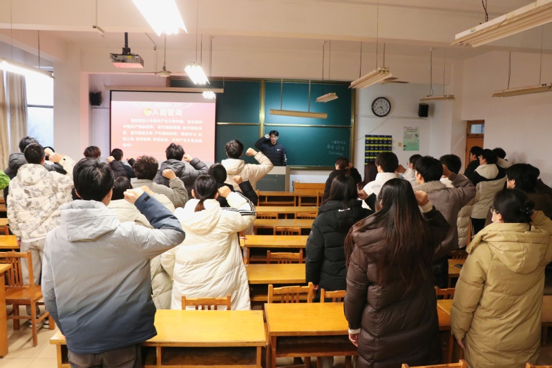 国歌奏唱完毕后,王晓冬老师发表讲话。他首先向新团员的加入表示热烈祝贺,随后带领大家一同回顾共青团的光辉历史与使命担当,强调共青团始终是党的忠实助手和可靠后备军。同时,王晓冬老师对新团员提出殷切期望:希望大家坚定理想信念,筑牢思想根基;勤奋刻苦学习,锤炼过硬本领;勇于担当奉献,践行青春使命;严守纪律规矩,树立良好形象,以实际行动践行入团誓言,努力成为有理想、敢担当、能吃苦、肯奋斗的新时代好青年。