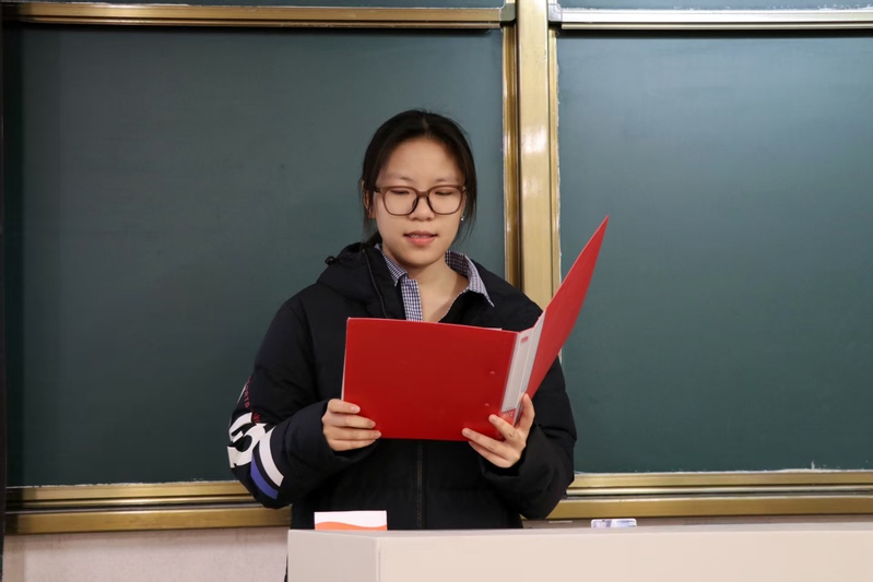 新团员代表滕真珍同学发言。她分享了加入共青团的激动心情,表达了对共青团组织的崇敬与热爱,并表示将以团员的标准严格要求自己,勤奋学习、积极进取,践行团员义务,为团旗增光添彩,不辜负团组织的培养与期望。