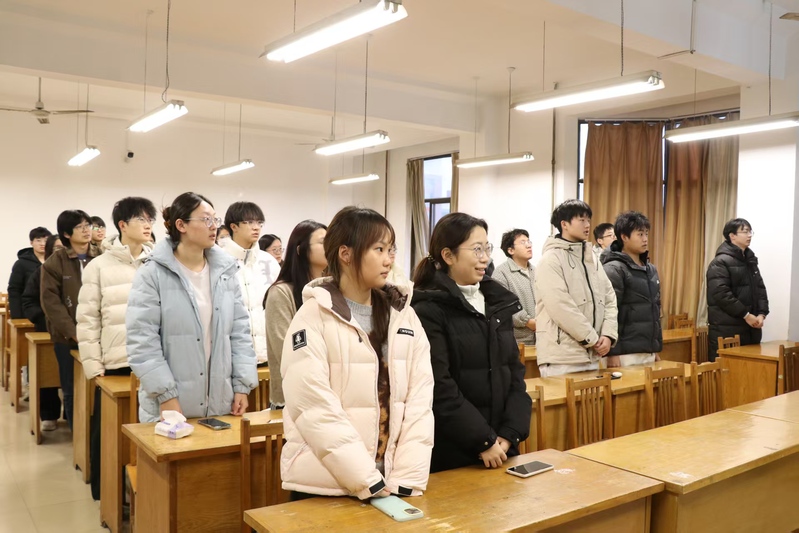 最后,仪式在激昂的《光荣啊,中国共青团》歌声中落下帷幕。全体人员起立合唱,歌声回荡在教室的每一个角落,传递着青年一代的蓬勃朝气与昂扬斗志。