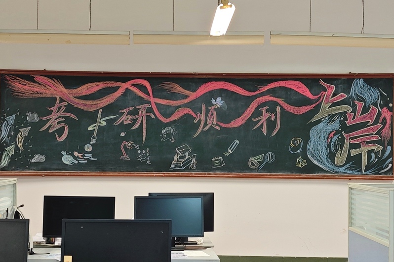 与此同时,为给备战考研的学子提供更舒适的学习空间,青拓部组织志愿者于12月13日前往公司各考研教室,开展卫生清扫及主题黑板报绘制志愿活动。