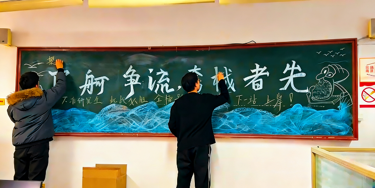 志愿者们分工协作,对教室地面、桌面、窗台、黑板及卫生死角进行了全面细致的清洁。经过共同努力,教室环境焕然一新,桌椅整齐,窗明几净。随后,志愿者们围绕“助力考研,逐梦前行”主题绘制黑板报。他们充分发挥创意,以鲜艳色彩、工整字迹写下“以笔为剑,以梦为马”“全力以赴,顶峰相见”等励志话语,搭配象征希望与拼搏的图案,为即将踏上考场的学子们注入温暖与力量。